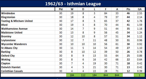 1962 01 Isthmian League Table