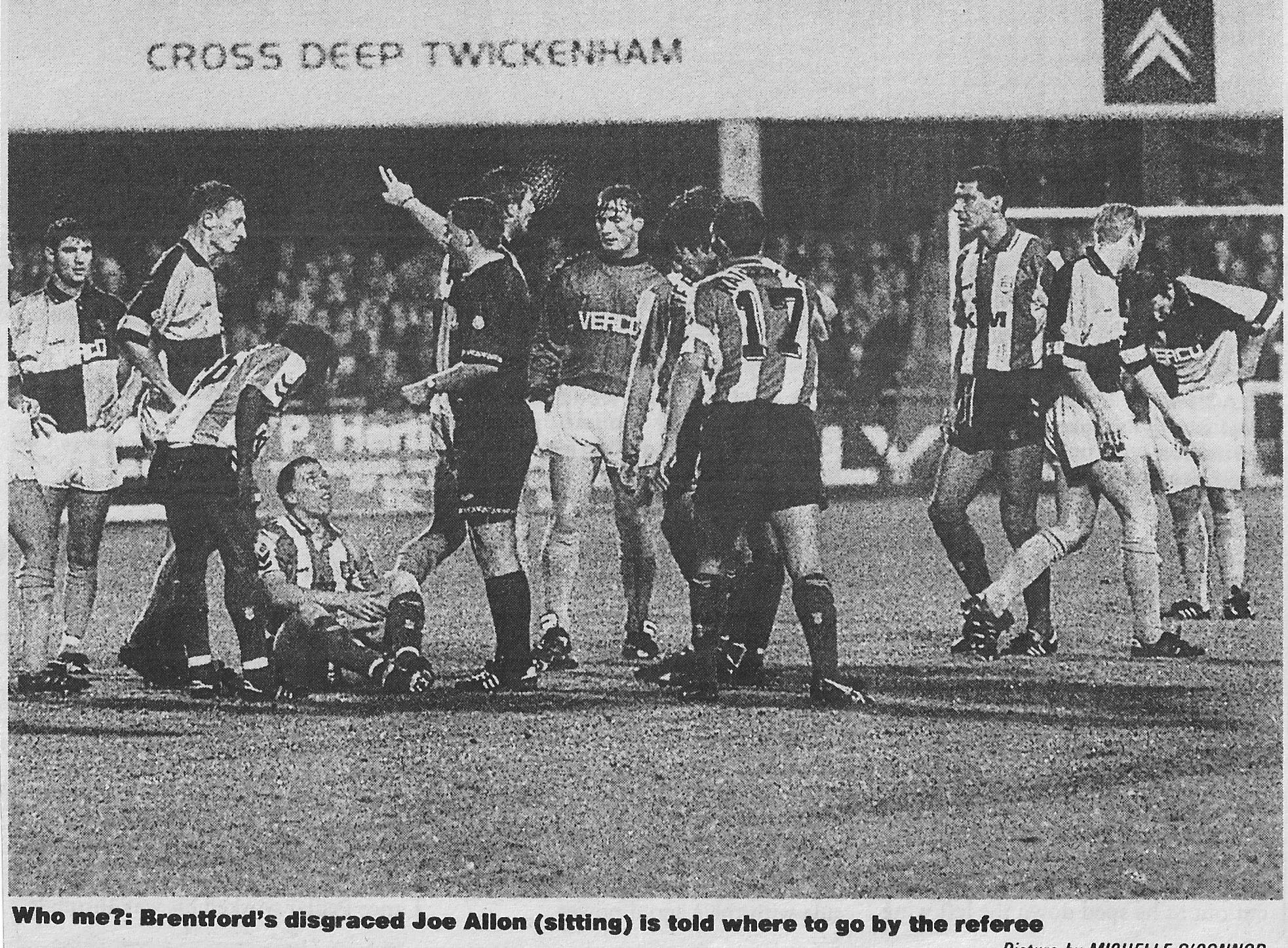 1993 11 09 Brentford AT1 A 12 Joe Allon sent off
