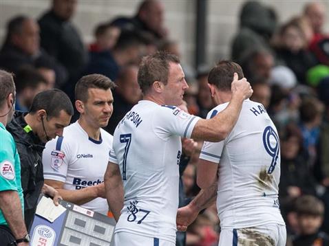 2017 04 17 Barnet 29 Paul Hayes off Garry Thompson on